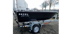 Aluminum Boat BREMA 450 PRO Fishing Tiller – features a strong welded hull made from 3 mm aluminum sheet, offering excellent stability and great handling on the water. Its wide beam and well-designed layout provide perfect conditions for fishing, relaxing, or spending time with family and friends.