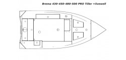 Aluminum Boat BREMA 450 PRO Fishing Tiller – a sturdy and durable fishing boat featuring a raised deck for standing and higher seating, with plenty of storage compartments. It is one of the best choices for freshwater fishing in Lithuania. The front structure allows easy installation of additional equipment, such as an electric motor with GPS anchor functionality, while the wide gunwales provide space for other fishing gear.