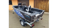 Aluminum Boat BREMA 450 PRO Fishing Console features a strong welded hull made from 3 mm aluminum sheet, offering high stability and excellent sailing performance. Its wide beam and well-planned layout provide ideal conditions for fishing, relaxing, or spending time with family and friends.